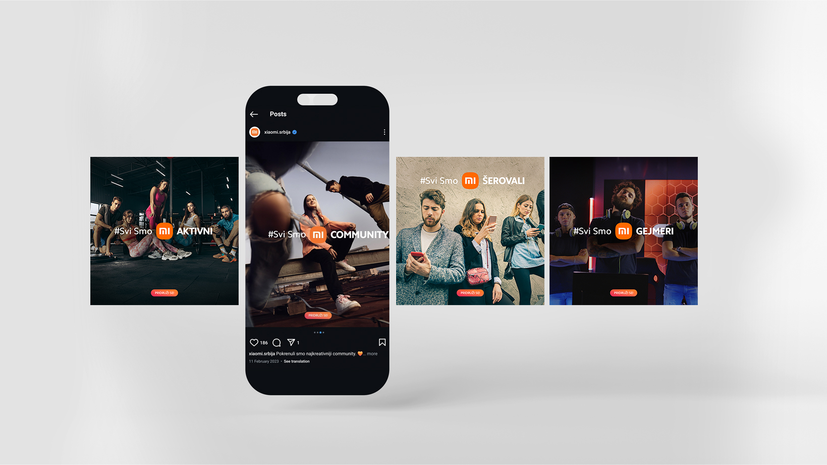 Our “We are all community” campaign uses a clever local word play in the Serbian language to integrate the Xiaomi logo into a powerful message.